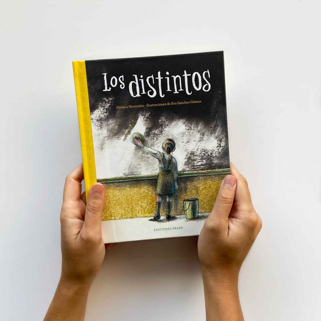Los distintos es el segundo título ilustrado por Eva Sánchez Gómez para Ediciones Ekaré. Las memorias de los protagonistas del libro, Socorro y Paquito, le evocaron vivencias de su propia familia, así como las de tantos niños y adultos que vivieron la guerra civil en España. Al ilustrarlo recordaba su infancia en Puigcerdà, junto a esa línea imaginaria llamada «frontera», imperceptible para cualquier niño, donde ella podía jugar con su hermano a las cabañas y tener un pie en cada lado, sintiendo que pisaban en todo momento la misma tierra.
